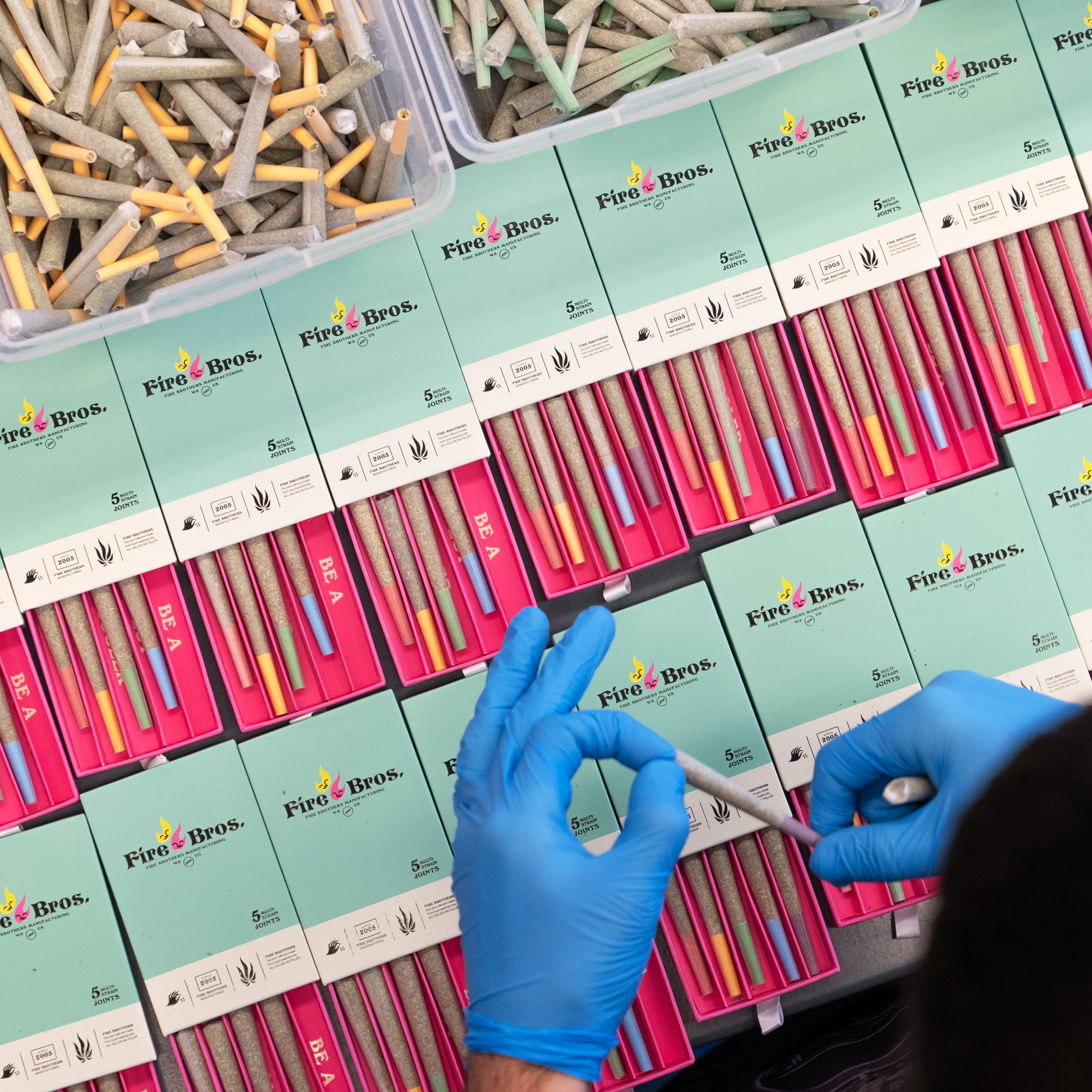 Flower, joints and concentrates are packaged by hand before being sent out to stores.